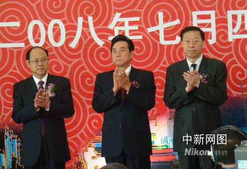 圖為海協會會長陳云林(中)、國臺辦常務副主任鄭立中(左)、江蘇省長羅志軍出席儀式。