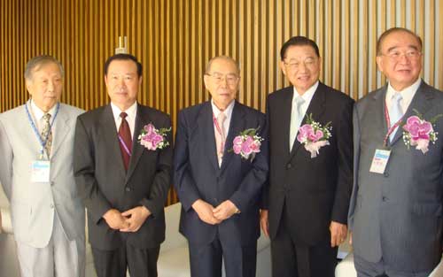 海基會(huì)董事長江丙坤(右二)與海協(xié)會(huì)副會(huì)長王在希(左二)七日出席第十三屆中國現(xiàn)代化學(xué)術(shù)研討會(huì)。中為“促進(jìn)中國現(xiàn)代化學(xué)術(shù)基金會(huì)”董事長梅可望。 (“中央社”圖)