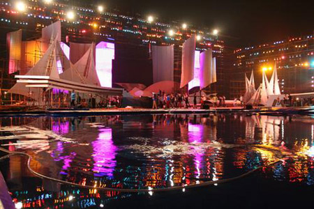國際先驅導報見習記者鄧媛發自北京 一邊是“驚濤拍岸,卷起千堆雪”的榮成海上舞臺,一邊是金碧輝煌、雍容典雅的臺北中式建筑。9月14日晚,這兩處別樣的景致在中央電視臺2008年中秋晚會的直播現場完美地融合在了一起。