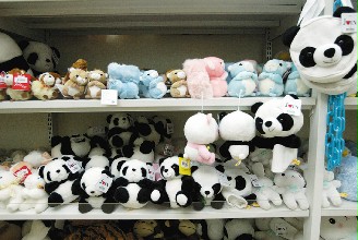 大陸贈(zèng)臺(tái)熊貓團(tuán)團(tuán)、圓圓23赴臺(tái),臺(tái)北市立動(dòng)物園的紀(jì)念品早就有“團(tuán)團(tuán)、圓圓”的蹤影,各式樣熊貓的紀(jì)念品被放在明顯的位置,等候民眾購(gòu)買。圖片來(lái)源:臺(tái)灣《聯(lián)合晚報(bào)》