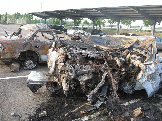 車子燒得面目全非,慘不忍睹。(圖:臺灣《聯合晚報》)
