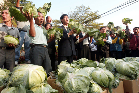 中新網12月17日電 國民黨“立委”陳朝容今天率領三十余位菜農前往臺當局“農委會”陳情。陳朝容說,高麗菜(即白菜)最近盛產,菜價卻崩落,農民快活不下去。