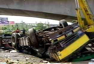 中新網(wǎng)12月20日電 據(jù)臺(tái)灣東森新聞網(wǎng)報(bào)道,臺(tái)中縣今天上午發(fā)生一起重大車禍,一輛15噸重的大貨車,疑似煞車失靈,失控闖紅燈直接撞上前方4臺(tái)摩托車,造成3死2傷的悲劇。