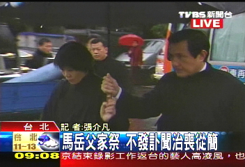 據(jù)臺灣TVBS報道,馬英九跪在老丈人遺體面前,感性地說了一段話,內(nèi)容大意是說自從和周美青結(jié)婚后,讓周美青身為公眾人物的太太,日子過得相當(dāng)委屈,也感謝老丈人多年來在背后的支持,希望他能原諒自己。