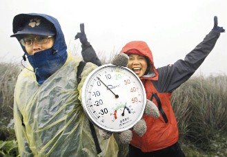 中新網2月14日電 寒流威力強到最高點,昨天全臺灣有七個地方創下入冬以來最低溫紀錄。宜蘭太平山、南山及桃園拉拉山都下雪了;臺北近郊的大屯山、七星山也陸續下冰霰。