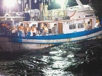 中新網6月11日電 臺北縣瑞芳籍“聯合號”海釣船10日凌晨在釣魚島海域遭日本海上保安廳巡邏艦追逐時撞沉,船上16人全部獲救。其中13名釣客晚間日方已交給臺方載回,船長何鴻義及兩名船員則被留置石垣島訊問。