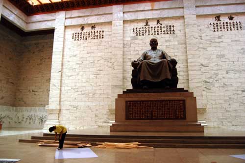 中新網6月20日電 據臺灣“今日新聞”報道,臺北中正紀念堂長達將近半年的特展,昨天正式劃下句點。今天早上一開門,里面包括布幔或是巨幅的圖片通通都撤除,蔣介石銅像又重見天日。