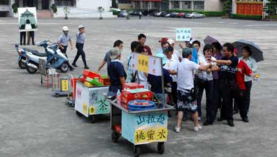 上午模擬演練的狀況,首先是風(fēng)景區(qū)“鏢客”和大陸客買賣發(fā)生糾紛,警察據(jù)報到場依違反社會秩序維護法將攤販帶回偵辦;另一個狀況則是大陸觀光團在“中正紀(jì)念堂”遇上激進團體散發(fā)文宣,沖突一觸即發(fā),轄區(qū)警局緊急趕到現(xiàn)場布署,利用人墻隔開,讓大陸客安全搭上游覽車,同時驅(qū)離鬧事群眾化解危機,示范內(nèi)容生動、逼真。
