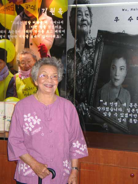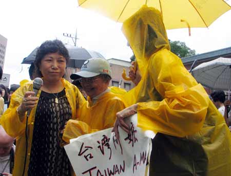 中新網7月16日電 曾被日本強迫征調為日軍慰安婦的臺灣阿嬤吳秀妹,今天由臺灣“婦女救援社會福利事業基金會”董事長葉毓蘭及董事陳淑麗等陪同,冒著大雨在首爾市日本大使館前高唱“雨夜花”,抗議日本軍國主義摧殘她的青春,并要求日本政府公開道歉及給予賠償。
