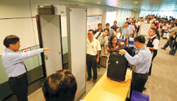 無論通關后或登機前,都有安檢人員特別“伺候”,把每一個旅客的行李都打開檢查。男性安檢人員有時還要檢查女性的衣物,引來一陣尷尬。