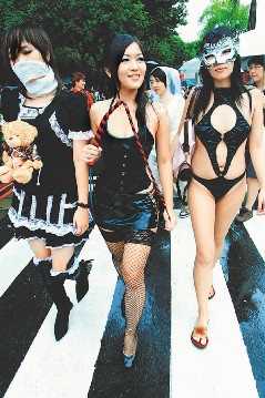 過(guò)去同志游行多是男同志裝扮最吸睛,今年SM團(tuán)體“皮繩愉虐邦”異軍突起,數(shù)名女性成員有的赤裸上身、僅以彩繪遮掩,有的穿黑色繩狀皮衣、光著雙腿,個(gè)個(gè)坦然大步前進(jìn),反倒是圍觀拍照群眾害羞起來(lái)。她們笑說(shuō)“要勇敢秀出身體的美”,還強(qiáng)調(diào)該團(tuán)“不分性向性別,是最彩虹的團(tuán)體”,沿路都是鎂光燈焦點(diǎn)。