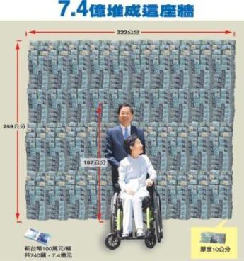 中新網(wǎng)12月2日電 臺(tái)灣《蘋(píng)果日?qǐng)?bào)》1日刊文說(shuō),臺(tái)灣島內(nèi)“紅衫軍”倒扁時(shí),扁家存放在元大的現(xiàn)鈔達(dá)7.4億元(新臺(tái)幣,下同)。以千元大鈔相疊,有22層樓高。按目前所知的計(jì)算,扁家的來(lái)源不明金錢(qián)高達(dá)20億。此外,還傳出扁用“空軍一號(hào)”載錢(qián)出境。怎樣?我們“臺(tái)灣之子”酷吧!