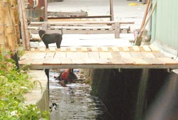 昨日上午,當地一間鋁窗工廠旁的水溝內,發現一具無頭男尸赤足躺在溝底,尸體頸部傷口平整,胸口有燒焦痕跡,身上無任何證件,水溝旁有一攤血跡,死者可能被拖行后丟入水溝。