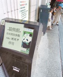 郝龍斌表示,為避免民眾到了動物園才發現已無看熊貓的名額,市府網站、各大捷運站及公共場所跑馬燈系統都會實時顯示熊貓館入館人數或剩余名額,臺北市民也可透過熱線詢問號碼牌余額,讓民眾自行評估要不要前往動物園或購票入園。