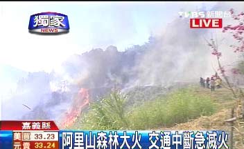 5公頃的林班地,突然發生大火,導致阿里山公路因為濃煙與火勢關系無法通行,警消已出動直升機,搶救滅火。