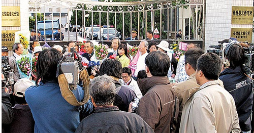 命運丕變:扁進入北所的第一道關卡,所有因扁的抗爭、聲援,或是律師、探視者發表談話,都是在這道大門發生。
