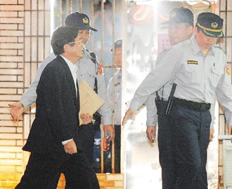 陳水扁8如傍晚被押解到臺灣高院開庭時,神情輕松的微笑出庭。圖片來源:聯合報