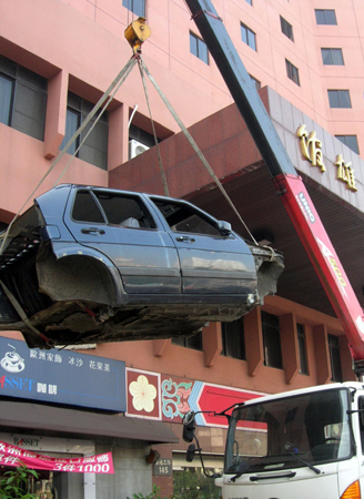 圖:高雄一劇團玩噱頭 吊掛報廢汽車上舞臺