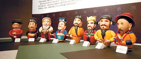 臺灣第二屆數字典藏商業應用大賽得獎作品公布,臺灣藝術大學三年級學生倪敏,把歷代皇帝變成Q版公仔(玩偶),創作《萬歲爺——三皇五帝》系列公仔,勇奪人物玩偶設計組第一名。 《中國時報》圖 李宗佑 攝