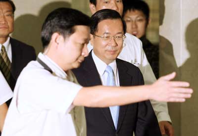 陳水扁今天上午9點(diǎn)20分驅(qū)車抵達(dá)臺北地院,一身筆挺西裝、藍(lán)色領(lǐng)帶、白色襯衫,臉上還露出略帶嚴(yán)肅的淺笑。沒有對媒體發(fā)表談話的他,似乎仍對今天的大對質(zhì)充滿信心。