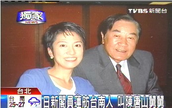 中新網6月12日電 據臺灣TVBS報道,日本新內閣里最年輕女閣員蓮舫,不但有華裔背景,而且她還要叫陳水扁任內秘書長陳唐山“舅舅”。蓮舫其實是陳唐山姐夫弟弟的女兒,她的中文原名叫做謝蓮舫,算是臺南鹽水人,后來蓮舫才跟著父親謝哲信移民日本;陳唐山說,他這幾年跟蓮舫見過幾次面,而且蓮舫還會講簡單的閩南語和普通話。