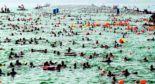 主持鳴槍下水的臺當局“行政院長”吳敦義說,比起他二十七年前舉辦首屆泳渡的規模,足足增加五十倍。南投縣長李朝卿說,二五八八八名泳者諧音“要我發發發”,所有參加的“勇者”都發發發。