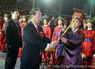 中新網(wǎng)9月27日電 2009年第二屆中華文化快車兩岸師生聯(lián)合祭孔大典今日上午在新竹隆重登場(chǎng),祭孔大典更開創(chuàng)先例,透過因特網(wǎng)同步同時(shí)在新竹、北京、山東三地聯(lián)合進(jìn)行,萬(wàn)余名兩岸師生共同參與。親民黨主席宋楚瑜更第二度應(yīng)邀擔(dān)任祭孔大典正獻(xiàn)人,這也是近60年以來,臺(tái)灣民間祭孔規(guī)模最大的一次集會(huì)。