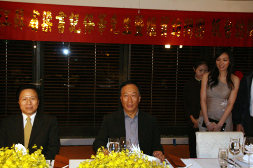 梁保華所帶領(lǐng)的大陸江蘇省經(jīng)貿(mào)考察團(tuán),晚上6時30分在涵碧樓湖光軒餐廳接受郭臺銘的晚宴,陪同的臺灣政商人士包括國民黨副主席林豐正、全臺工業(yè)總會理事長陳武雄等人,計有兩岸代表約50人參加。
