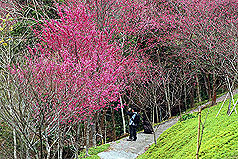 中新網2月21日電 據“中央社”報道,春節假期,臺中縣東勢林場森林花園正值櫻花季,滿山都是姹紫嫣紅的山櫻花及各式花海,相當明艷動人,還可以賞鳥、泡泡腳,是新春假期出外踏青,走春的好去處。