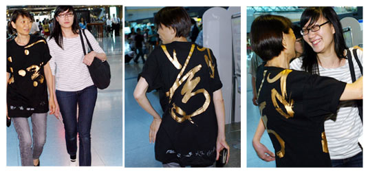 “我昨天才來過,還買兩件!”這位民眾買書法T恤,顯得十分得意。現(xiàn)代美術(shù)館小小的柜臺詢問度第一名的,就是周美青穿過的“有所不為”T恤,很多人還幫外國朋友買,結(jié)果第一個(gè)斷貨的就是XLsize。