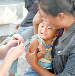 中新網11月2日電 臺灣島內甲型H1N1型流感疫苗1日在6個縣市的14個臺風“莫拉克”災民收容中心開打,這是島內有史以來最大規模的預防接種工作,各地衛生單位都嚴陣以待。據統計,昨日共有884位災民接種,雖較預期人數少,但和季節流感相比,民眾反應已算踴躍。