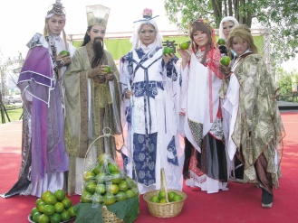 中新網11月6日電 據臺灣《聯合報》報道,嘉義縣竹崎鄉長王焜5日打扮成臺灣布袋戲頭號人物“素還真”,為7、8日的竹崎椪柑節宣傳,強調竹崎椪柑豐收又好吃,且將選出“椪柑美人”、“椪柑大力士”,8日晚會還有千手觀音等精彩節目。