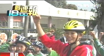 穿起牛仔褲、一身輕便裝扮的周美青,南下來到嘉義和偏遠地區的小朋友來趟自行車之旅,跨上自行車,她的身手可把不少身邊的人都比了下去。