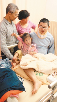 中新網3月3日電 據臺灣《聯合報》報道,孝子扛家計,卻因惡性腫瘤住院經濟斷炊。新竹縣28歲的葉棟耀從高中時天天凌晨4點起床送報,現在則白天當保全員,晚上與身障妻子賣口香糖,養活父母和女兒一家6口,日前卻罹患惡性骨腫瘤住院,下半身恐癱瘓,父母老淚縱橫“這么孝順的孩子,怎么這么歹運!”