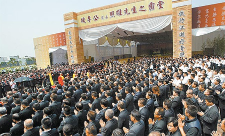 昨到場迎靈和吊唁的要角,包括四海幫前幫主“么么”黃少岑及現(xiàn)任幫主“弟哥”張建英、天道盟精神領(lǐng)袖“圓仔花”陳仁治、臺中市議長張宏年、臺中縣議長張清堂等人,治喪委員也動員親友或企業(yè)員工到場,總?cè)藬?shù)近千人,場面浩大。