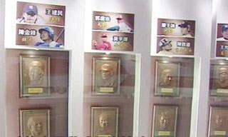 據悉,在臺北縣新莊棒球場,陳列了由臺北縣民眾投票選出的10大棒球名人,還特別做了一比一的仿銅雕塑肖像。