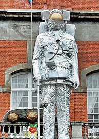 中新網6月7日電 據臺灣《蘋果日報》報道,蔣介石銅像也搞角色扮演?臺北市建國中學上周五舉辦畢業典禮,因今年畢業主題為科技未來風,學生用錫箔紙包覆校門口的蔣介石銅像,并戴上保麗龍制的頭盔、氧氣筒,變身太空人,祝福建中人畢業后能邁開大步。校方表示,學生創意未丑化銅像,不擔心惹政治爭議。