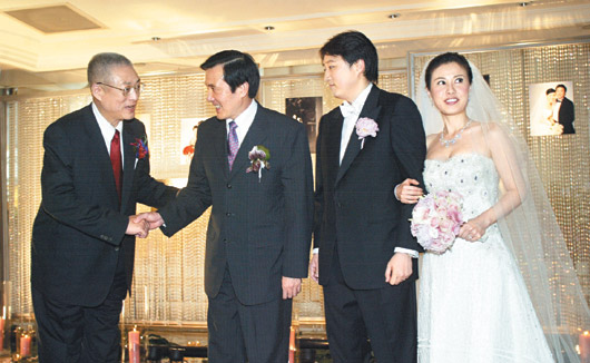 中新網(wǎng)6月15日電 中國國民黨副主席、秘書長吳敦義次子吳子文昨日在臺北舉行結(jié)婚酒會,馬英九、劉兆玄、王金平、吳伯雄等黨政高層出席致賀,現(xiàn)場冠蓋云集。
