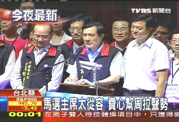 中新網(wǎng)7月22日電 據(jù)臺(tái)灣TVBS報(bào)道,馬英九參選國(guó)民黨主席,21日晚在臺(tái)北縣開(kāi)講,馬英九花了相當(dāng)大篇幅贊揚(yáng)縣長(zhǎng)周錫瑋,還調(diào)侃民進(jìn)黨明年參選新北市呼聲很高的蘇貞昌,讓這場(chǎng)政見(jiàn)會(huì),看起來(lái)反而像準(zhǔn)主席拉抬周錫瑋的輔選大會(huì)。