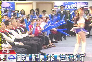穿著超短迷你裙的舞者,在只隔馬英九主席不到半米的距離,蹦蹦跳跳一點(diǎn)也不怕走光,令人臉紅心跳。