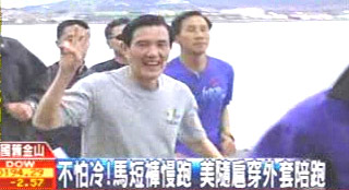 報道稱,馬英九真的是不怕冷,在舊金山陰雨綿綿、又濕又冷的清晨,馬英九則是穿著小短褲的招牌慢跑勁裝出現。