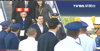當(dāng)時,馬英九準備下機,沒想到隨即就發(fā)生一個踉蹌,差點當(dāng)場出糗。這也讓馬英九身旁的侍衛(wèi)長鄭德美、“國安會秘書長”蘇起頻頻探頭查看到底發(fā)生了什么事,才發(fā)現(xiàn)竟然是登機梯空了一大截。