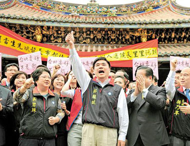 大批民眾拿著“臺北要‘郝’,不要‘蘇’”的標語,力挺郝龍斌,“凍蒜(當選)”聲不絕于耳,緊接著郝龍斌用閩南話演說,“我要向神明報告,過去三年誠心和認真為臺北市打拼,祈求神明保佑,讓我繼續為市民服務。”