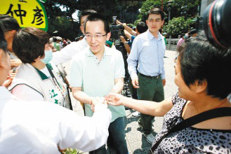 中新網6月7日電 綜合臺灣媒體報道,陳水扁之子陳致中7日北上臺北,陪同民進黨臺北市議員參選人童仲彥在萬華艋舺一帶掃街拜票,雖然扁家最近匯回1億多新臺幣,但對于11日扁案二審宣判,阿扁能否交保,陳致中也無把握,連說了三次“希望父親早日回家團圓”。此外,陳致中還于一早去龍山寺上香祈福。
