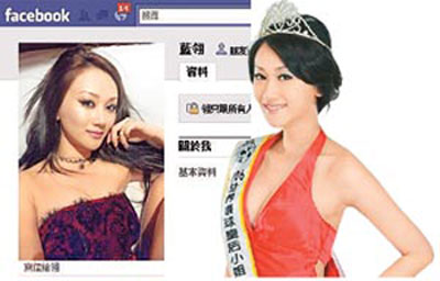 報道說,Amanda在Facebook自稱獲“2006環(huán)球小皇后臺灣區(qū)代表”,據(jù)查,真正代表是李蔚玲,Amanda作假,先在網(wǎng)絡上放作假戴后冠、肩帶的照片,又放上與李蔚玲披該賽代表肩帶的合照,因作假露餡,之后取下照片。