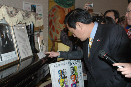 馬英九前往東京日比谷公園的松元樓,參觀孫中山生先流亡日本期間的相關資料。