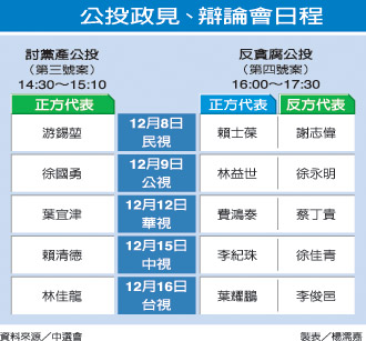 藍綠"公投"政見及辯論會8日登場 對陣者排定(圖)