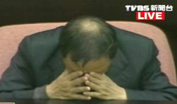 可能因為冗長的會議,杜正勝用力搓揉自己的眼睛,似乎想讓自己打起精神來,但抵抗不住濃濃的困意,開始閉目養(yǎng)神。