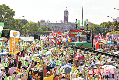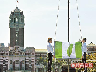 臺(tái)灣《蘋果日?qǐng)?bào)》9日?qǐng)?bào)道,臺(tái)灣“獨(dú)派”團(tuán)體“9.08臺(tái)灣國”聯(lián)盟昨天在臺(tái)北市凱達(dá)格蘭大道上舉行升“臺(tái)灣國旗”鬧劇,并由“臺(tái)灣公民社”秘書長(zhǎng)廖林麗玲宣讀所謂的“臺(tái)灣國宣言”,叫囂終結(jié)“中華民國體制”,邁向“臺(tái)灣建國”之路。