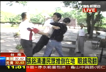 臺當局譴責“臺獨”分子推倒追打張銘清(圖)